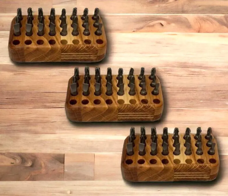 3er Set Bits Aufbewahrung Bithalter Organizer Eiche Holz geölt für 3x 32 Bits