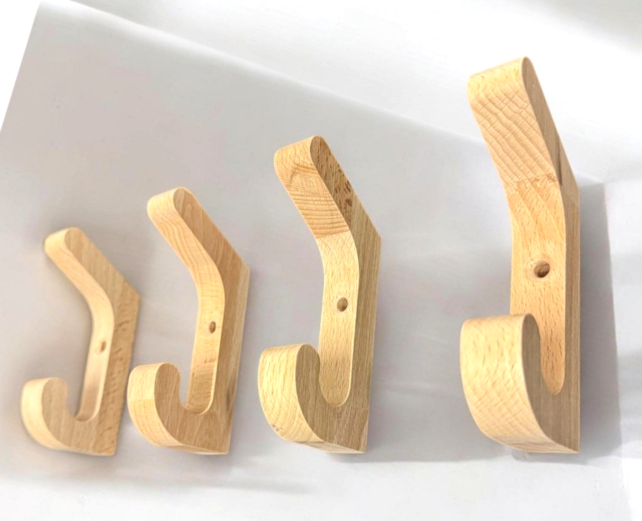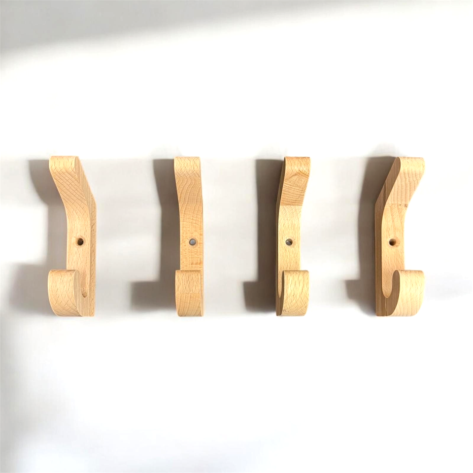4 Kleiderhaken HOLZ aus Buchenholz Wandmontage Kleiderhaken Aufbewahrung Natur