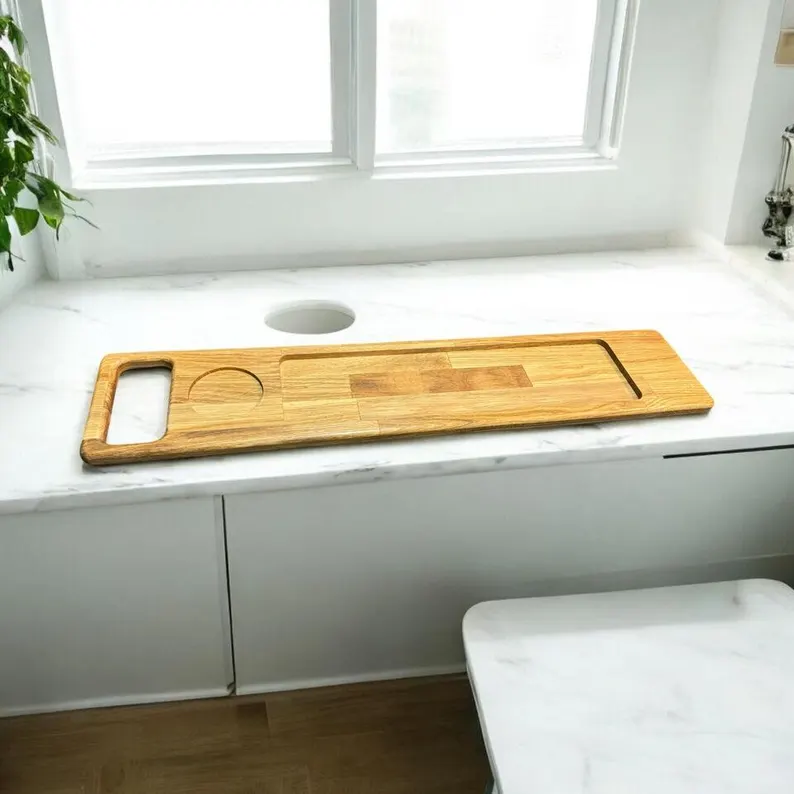 Badewannenablage aus Eichenholz Ablage Halterung Badewannentablett Wannenablage 75cm, 80cm, 90cm, 100cm