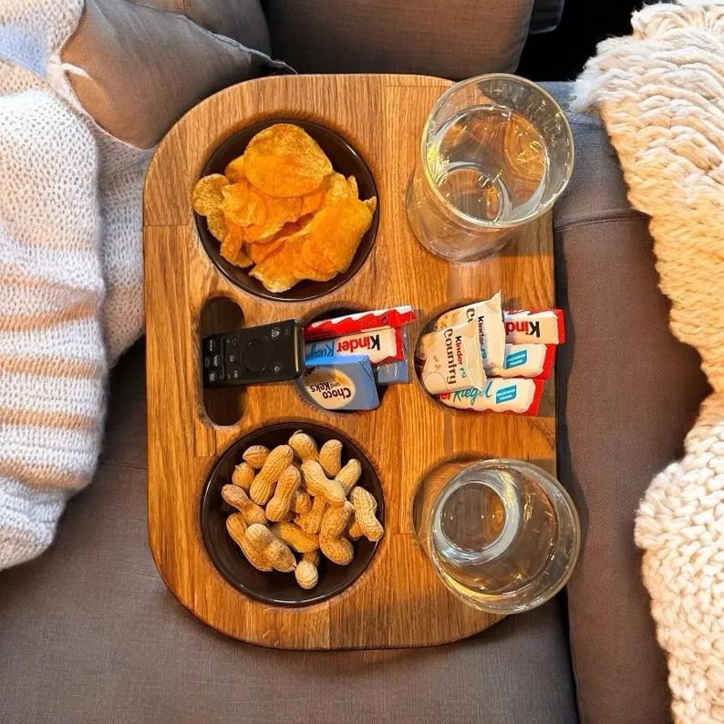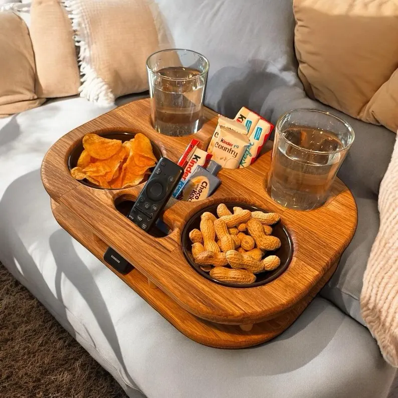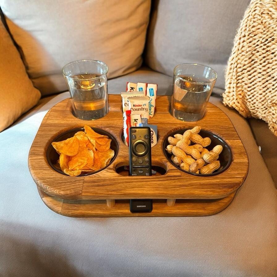 Genieße gemütliche Tage auf der Couch mit unserem exklusiven Couch-Butler, dem Must-Have für perfekte Fernsehabende. Schluss mit verschütteten Getränken und chaotischen Couchtischen – der Couch-Butler schafft Ordnung und Stil in deinem Wohnzimmer.