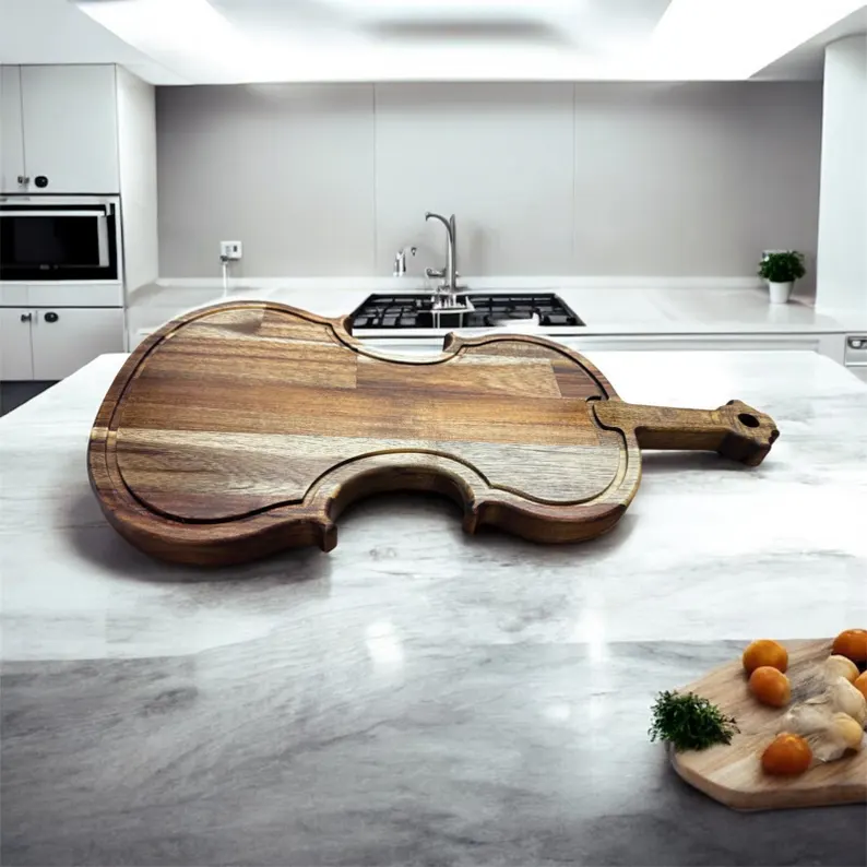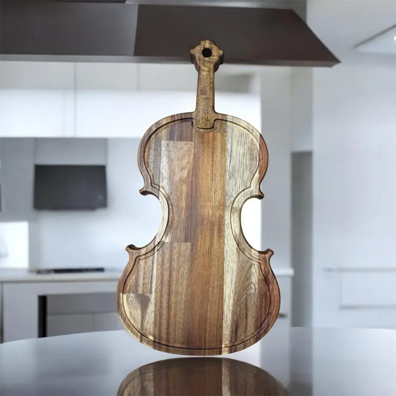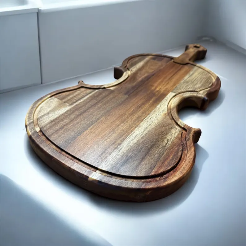 Schneidebrett GEIGE VIOLINE CELLO Akazienholz Hackbrett geölt Massiv 50x25x2,6cm Saftrinne