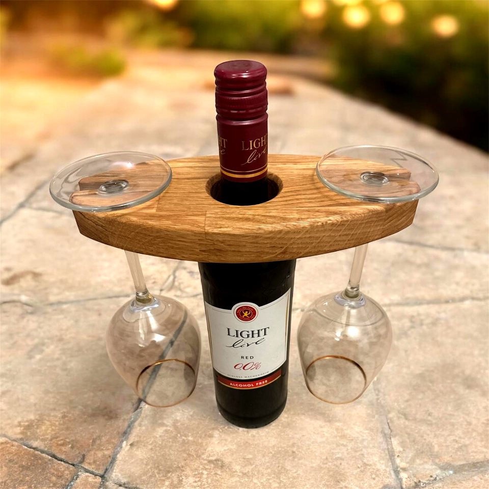 Weinflaschenhalter aus Eichenholz Flaschenhalter für 2 Gläser