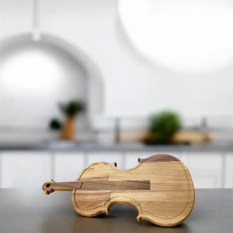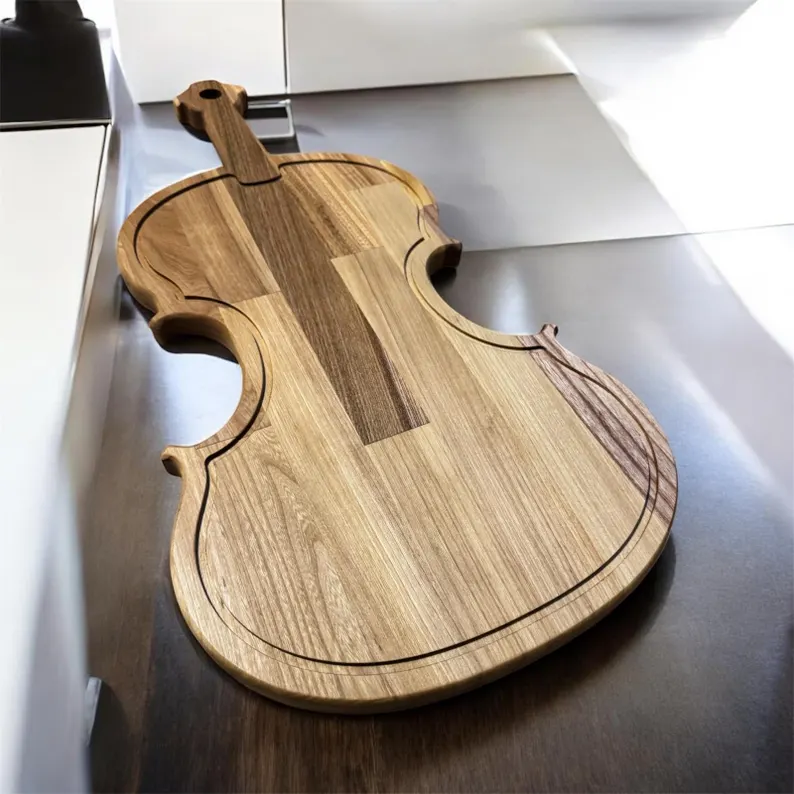 XXL SYWOOD Schneidebrett GEIGE aus Ulmenholz Küchenbrett Hackbrett geölt Massiv